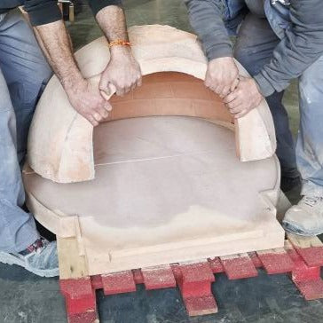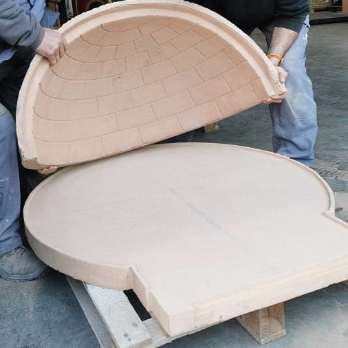 This is a 100% modular oven, composed of 4 pieces: 2 for the base, 1 for the dome and the entrance with the door included and installed. This modular construction makes it much easier to assemble, while avoiding problems with cracks or fissures, since the joints themselves absorb any expansion. The kit includes the following components: